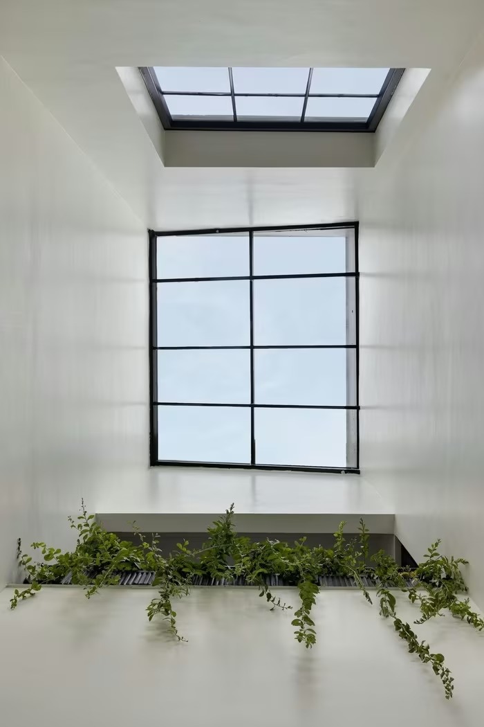 Do diện tích xây dựng không quá lớn, khoảng lùi rộng nên kiến trúc sư thiết kế 4 khoảng thông tầng giúp mang ánh sáng và gió tự nhiên vào bên trong. Ảnh: Purnesh Dev Nikhanj |