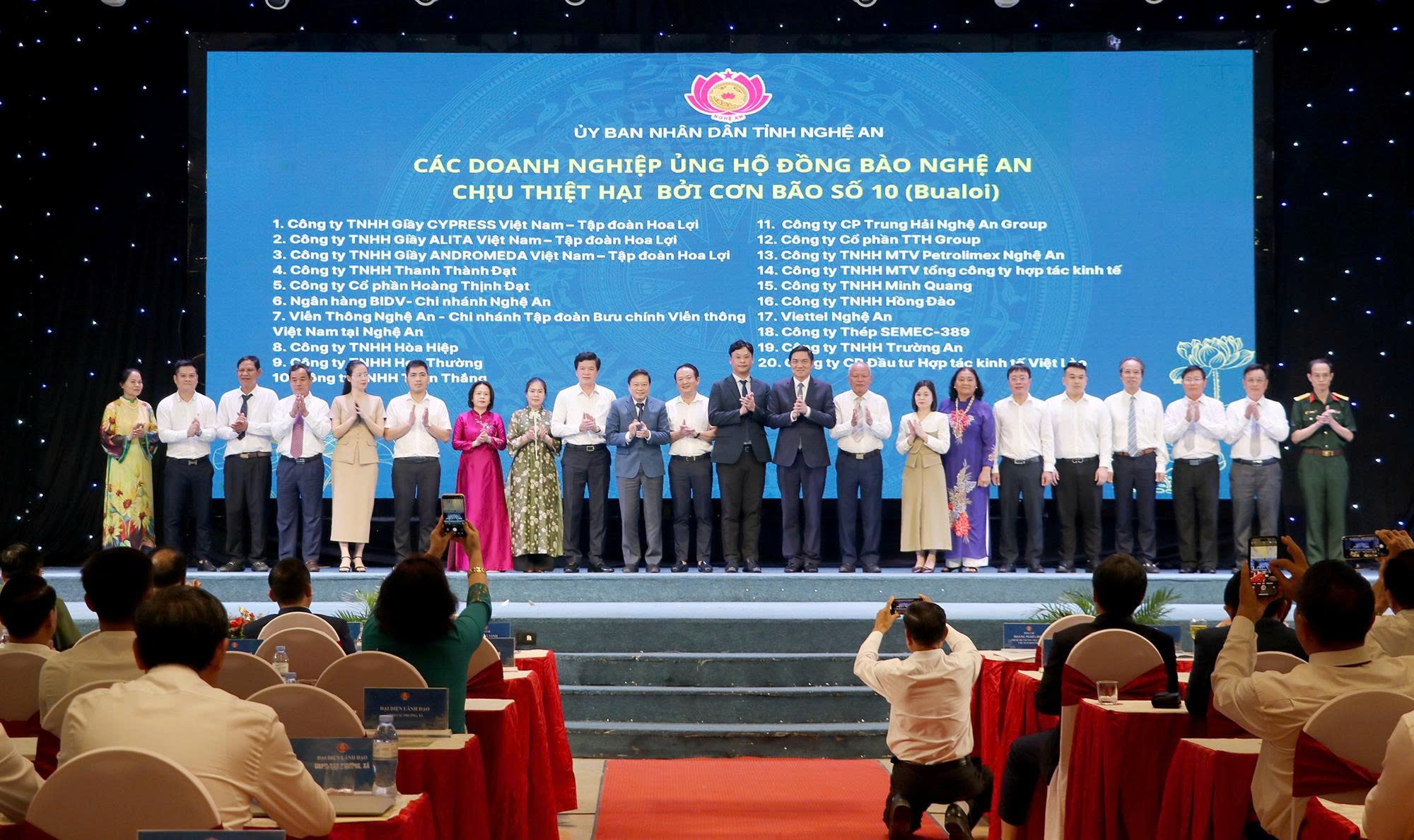 Cùng tại Chương trình, với trách nhiệm, sự sẻ chia, tinh thần tương thân, tương ái, nhiều doanh nghiệp, doanh nhân tiêu biểu đã trao những phần quà, những khoản hỗ trợ thiết thực nhằm chia sẻ khó khăn, giúp bà con sớm ổn định cuộc sống sau thiên tai.
