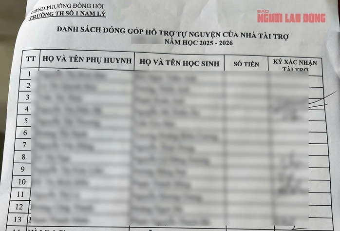 Ngày 13-10, phụ huynh Trường Tiểu học số 1 Nam Lý (phường Đồng Hới) cho hay được yêu cầu ký vào danh sách đóng góp "tự nguyện", song mức tiền lại được hội phụ huynh thống nhất sẵn.
