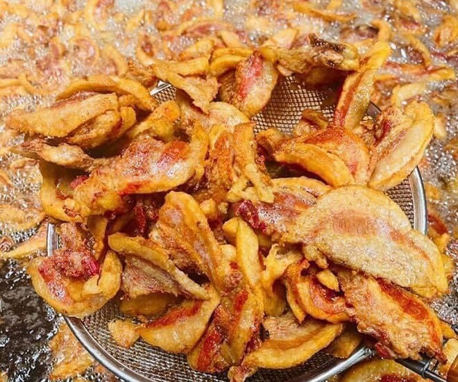 Khi tóp mỡ chuyển sang màu vàng óng, nổi lên và giòn rụm là đạt chuẩn. Thành phẩm có lớp ngoài giòn tan, bên trong vẫn giữ được độ ngọt mềm, béo nhẹ mà không ngấy.