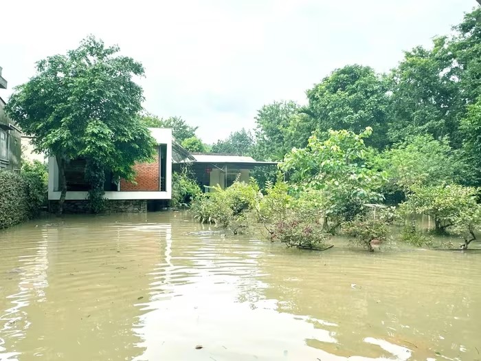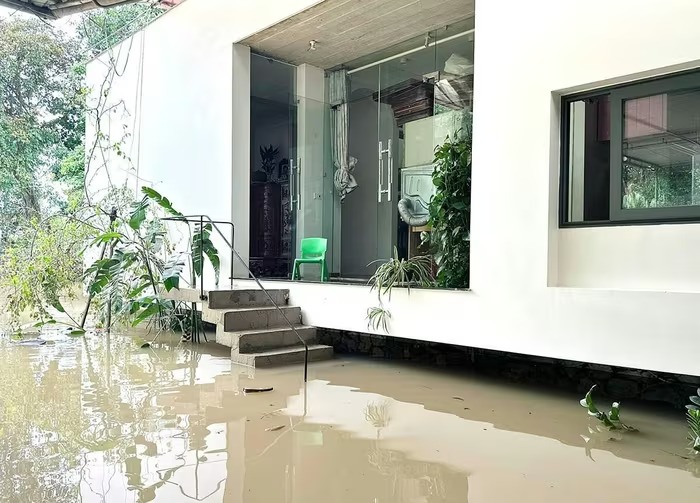 Khi mùa lũ về, ngôi nhà phát huy đúng vai trò của mình: nước có thể tràn qua sân nhưng không ảnh hưởng đến sinh hoạt bên trong. Ảnh: Hoang Le & NKPA |