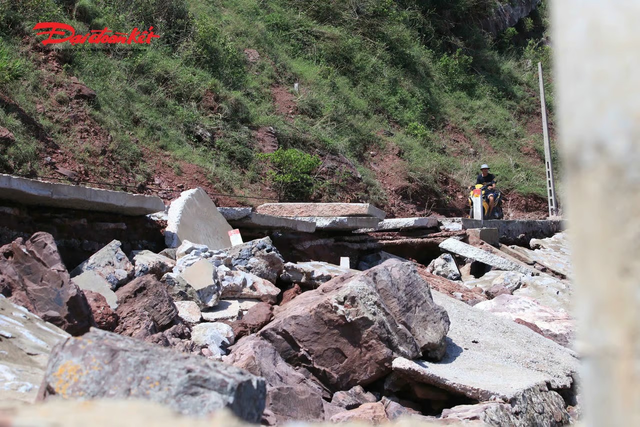 Ông Nguyễn Đình Thi - Chủ tịch UBND xã Hải Lộc cho biết, khu vực thiệt hại nặng nhất dài khoảng 300m, nằm giáp ranh giữa hai xã Nghi Yên và Nghi Tiến cũ. “Tuyến đường nằm sát biển, khi bão đổ bộ, sóng lớn đánh trực tiếp vào nền đường khiến kết cấu bị xói lở, có chỗ khoét sâu cả mét. Nhiều phương tiện phải đi sát mép núi mới có thể lưu thông”, ông Thi nói.