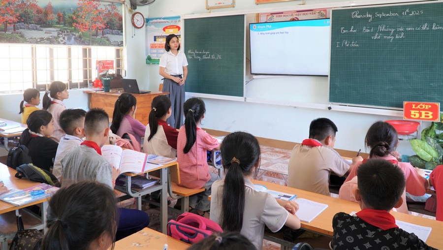 Tiết dạy học môn Tin học tại Trường Tiểu học Trung Phúc Cường 2 (Thiên Nhẫn, Nghệ An). Ảnh: Ngọc Sơn |