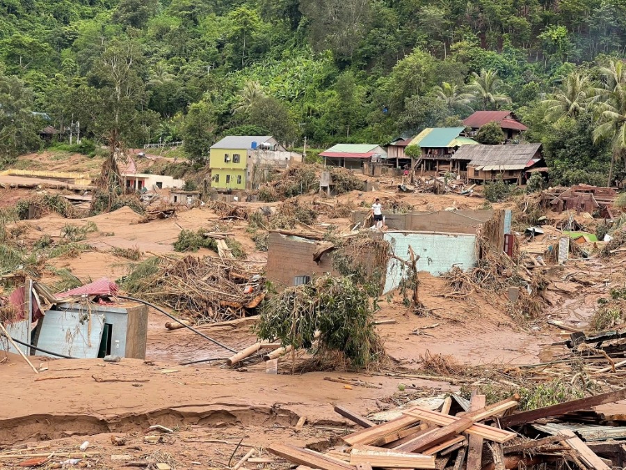Khung cảnh bản Xiềng Tắm, xã Mỹ Lý (Nghệ An) tan hoang sau lũ lớn trong cơn bão số 3 cuối tháng 7 vừa qua. |