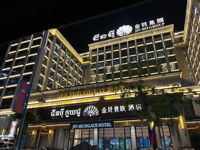 Đêm 15/10, khách sạn Jin Bei Palace năm sao ở trung tâm thành phố Sihanoukville vẫn sáng đèn rực rỡ và nhộn nhịp. Tòa nhà 7 tầng, với hơn 200 phòng sang trọng và một sòng bạc lớn, chật kín khách nói tiếng Trung. Xe sang lần lượt đỗ trước cửa.