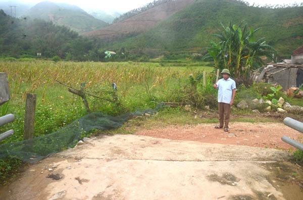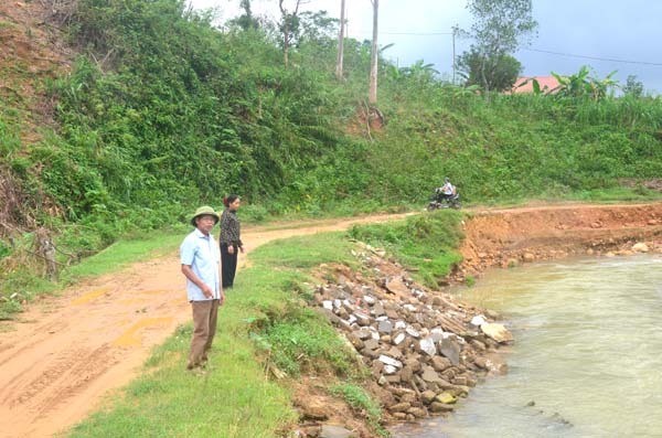 Cũng theo ông Tân, cầu tràn này được xây dựng vào khoảng năm 2016 -2017, tuy nhiên lúc xây dựng xong thì không có đường dẫn lên cầu tràn. Người dân phải mượn đất của một hộ dân ở gần đó nối với đường đất xóm để có một tuyến đường lên cầu tràn. Tuyến đường này men theo bờ suối nên rất dễ sạt lở khi nước lũ dâng cao.