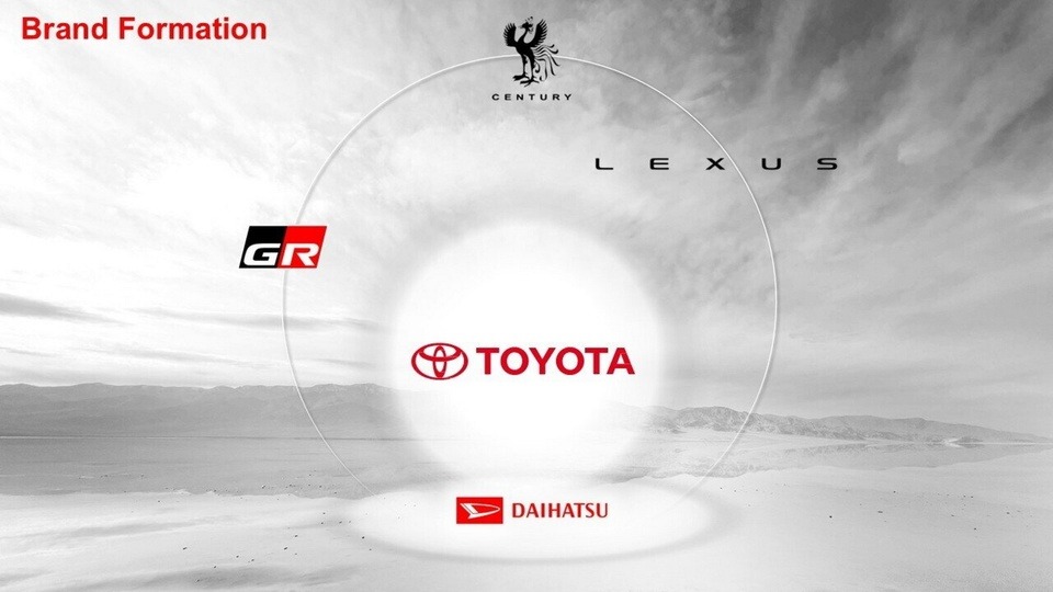 Định vị thương hiệu của tập đoàn Toyota bao gồm các mẫu xe phổ thông mang thương hiệu Toyota và Daihatsu, các dòng xe hiệu suất cao của Toyota GR, các mẫu xe sang được phân phối với thương hiệu Lexus và cao cấp nhất là Century. |