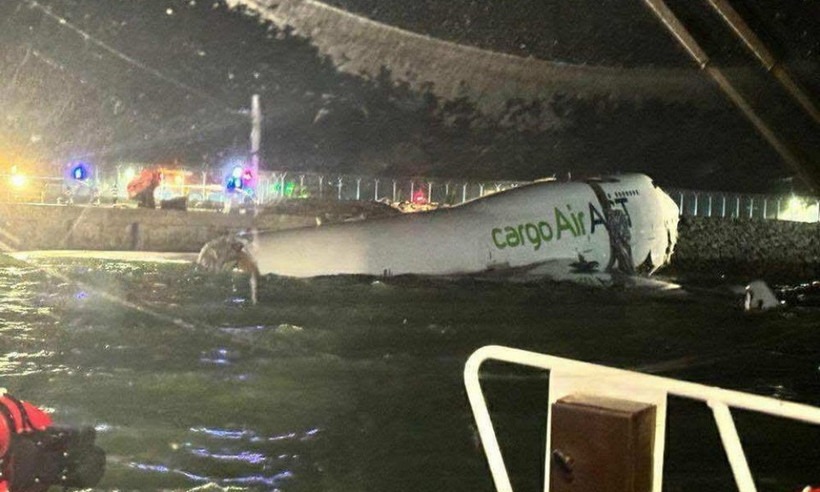 Chiếc Boeing 777 chở hàng không kịp dừng và lao một phần thân xuống vùng nước ngoài rìa phía Bắc sân bay. Các báo cáo ban đầu cho thấy phương tiện mặt đất cũng bị hất xuống biển.