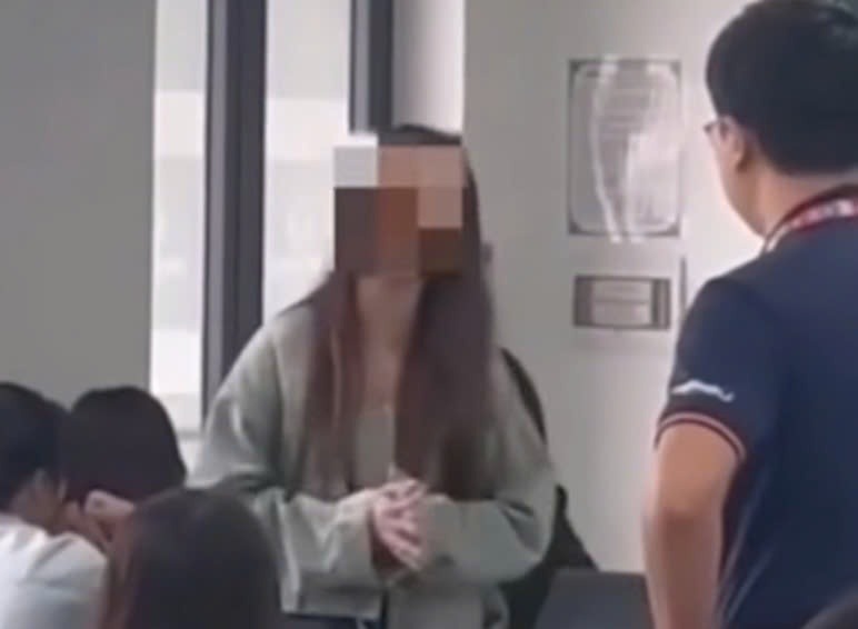 Nữ sinh cự cãi với giảng viên. Ảnh: Cắt từ clip. |