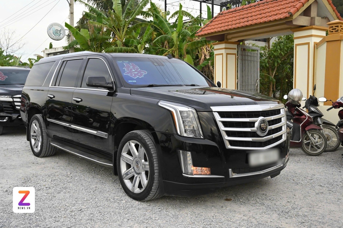 Chiếc Cadillac Escalade 2020 dẫn đầu đoàn. Xe này hiện có giá khoảng 3 tỷ đồng. Cadillac Escalade 2020 có thiết kế nổi bật và nhiều tính năng tiện dụng. |