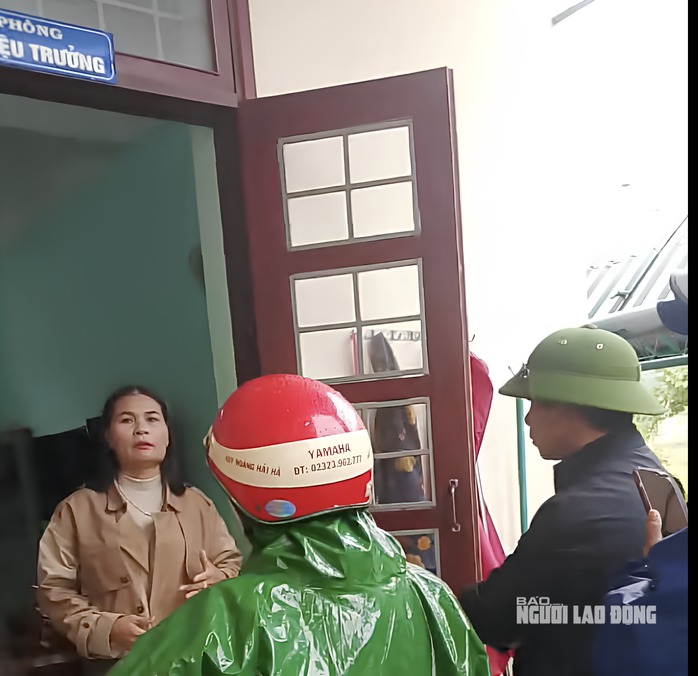 Tuy nhiên, sự xuất hiện của bà Huế trong thời gian đang bị đình chỉ khiến không khí trường học hỗn loạn. Công an xã Kim Ngân sau đó đã có mặt để ổn định tình hình, mời bà Huế vào phòng làm việc, tránh gây mất trật tự. Bên trong phòng làm việc có cả Hiệu trưởng Đỗ Văn Mỹ.