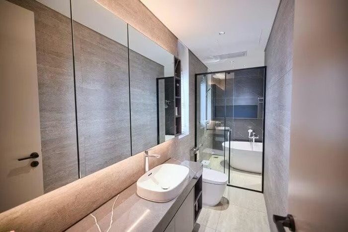 Phòng tắm được đầu tư kỹ lưỡng với hệ thống sen tắm hiện đại, buồng kính riêng biệt đến bồn tắm độc lập. Ảnh: FBNV |