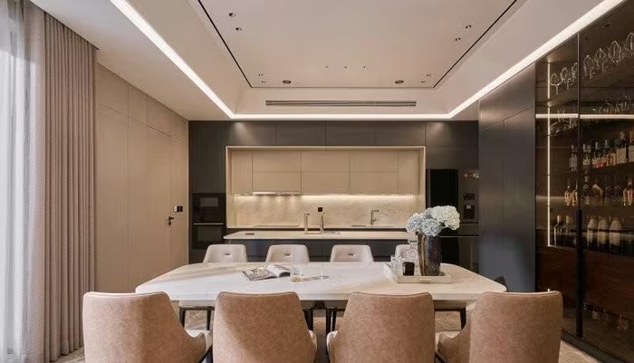 Khu bếp nối liền phòng khách theo kiểu mở hiện đại, với trang thiết bị châu Âu. Ảnh: FBNV |
