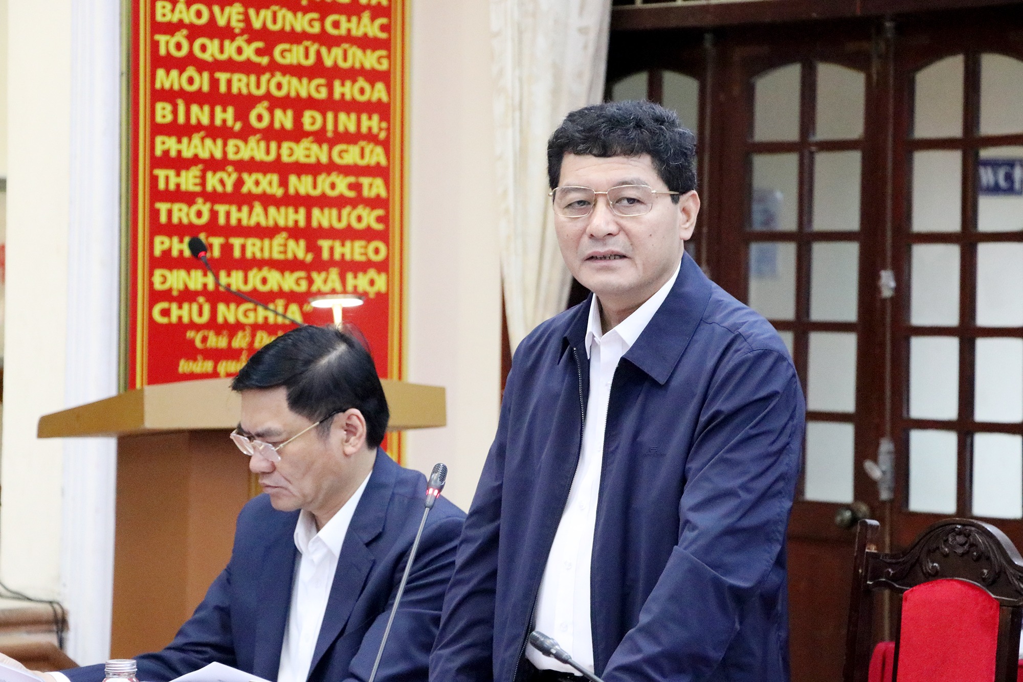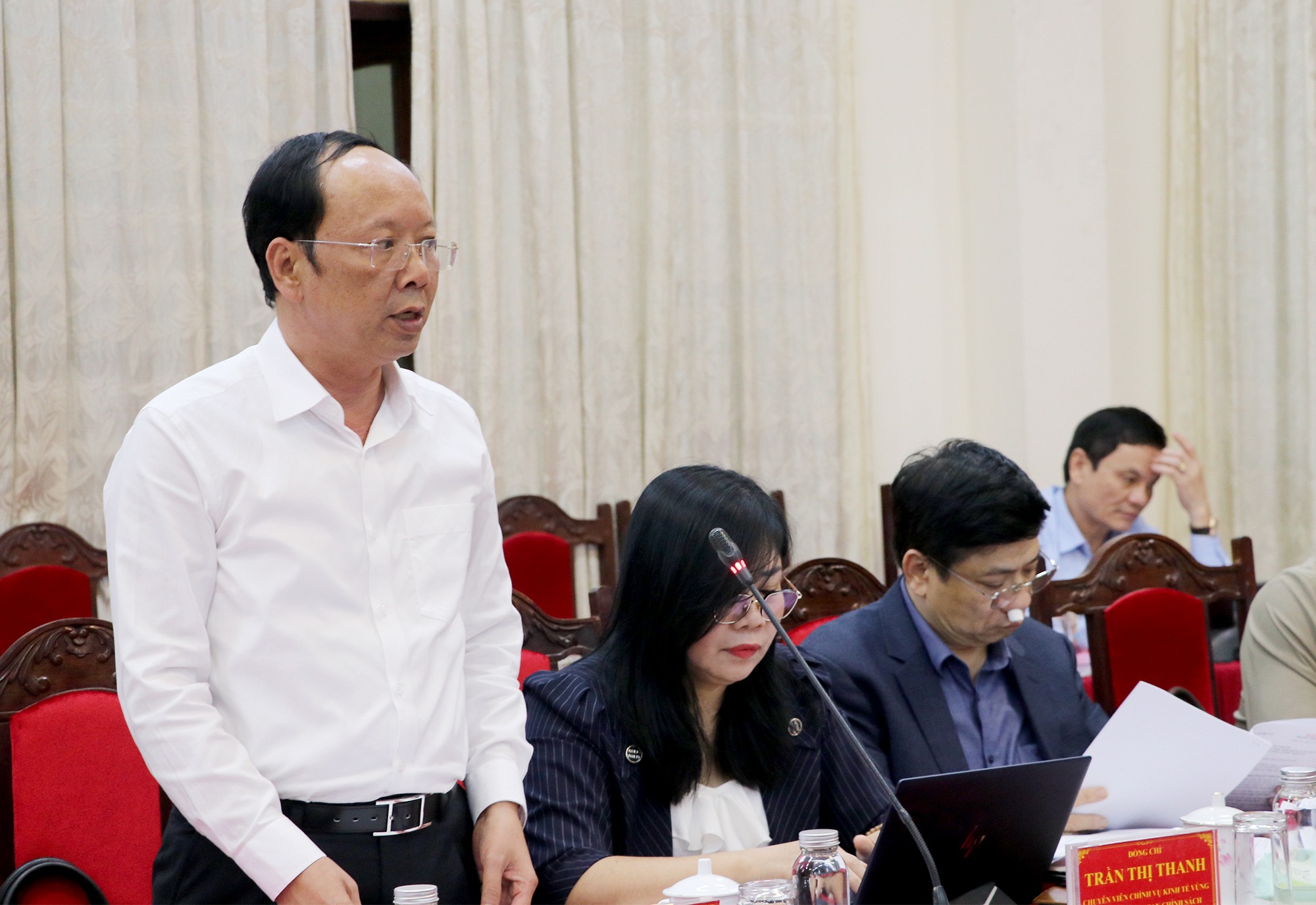 Giám đốc Sở Tài chính Trịnh Thanh Hải thay mặt Đảng ủy UBND tỉnh báo cáo nội dung xin ý kiến |