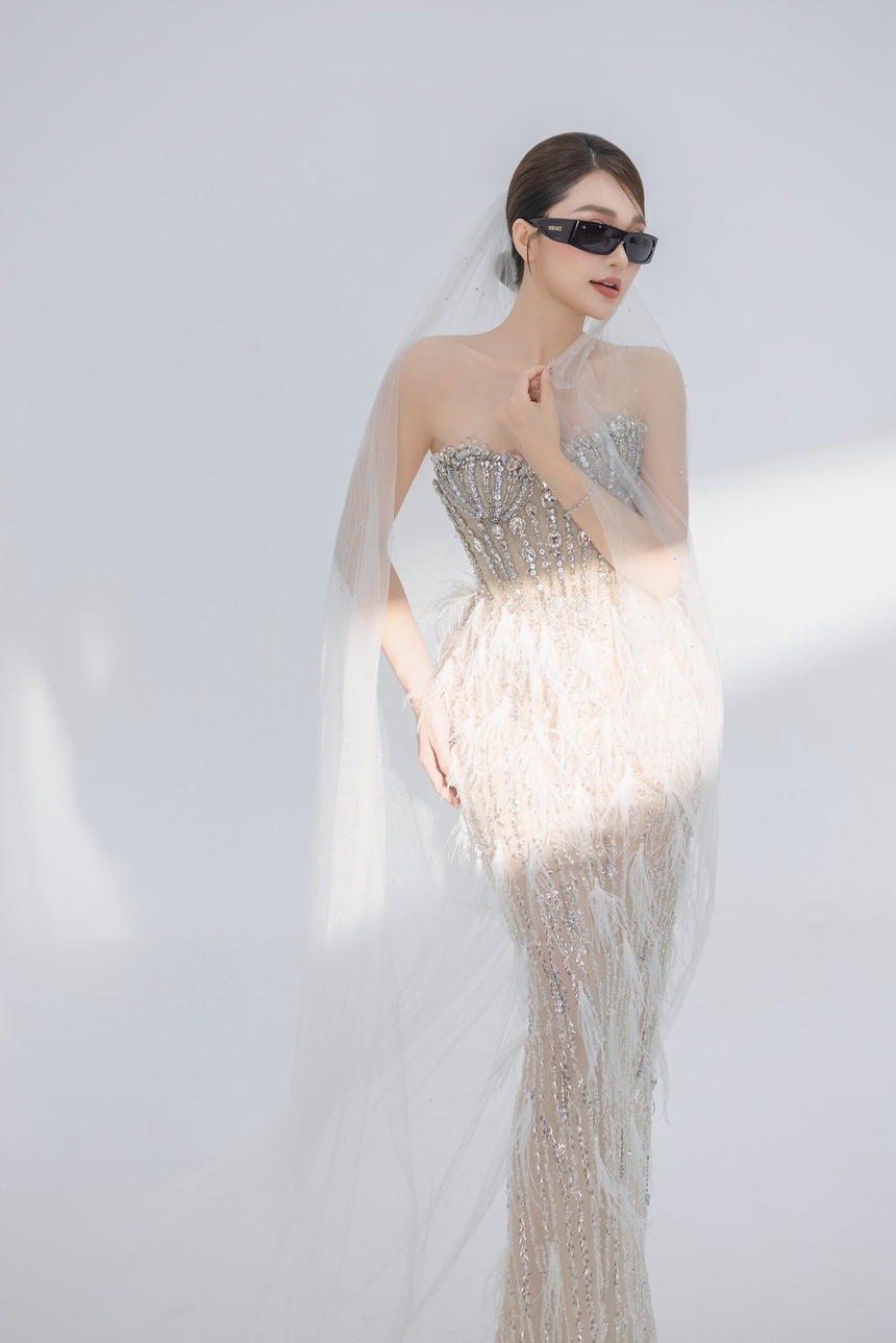 Trong một concept ảnh cưới, Ngọc Nữ diện chiếc váy cúp ngực, dáng đuôi cá. Thân váy đính kết những viên đá lấp lánh, tôn lên vóc dáng của người đẹp từng lọt Top 10 Hoa hậu Hoàn vũ Việt Nam 2017. |