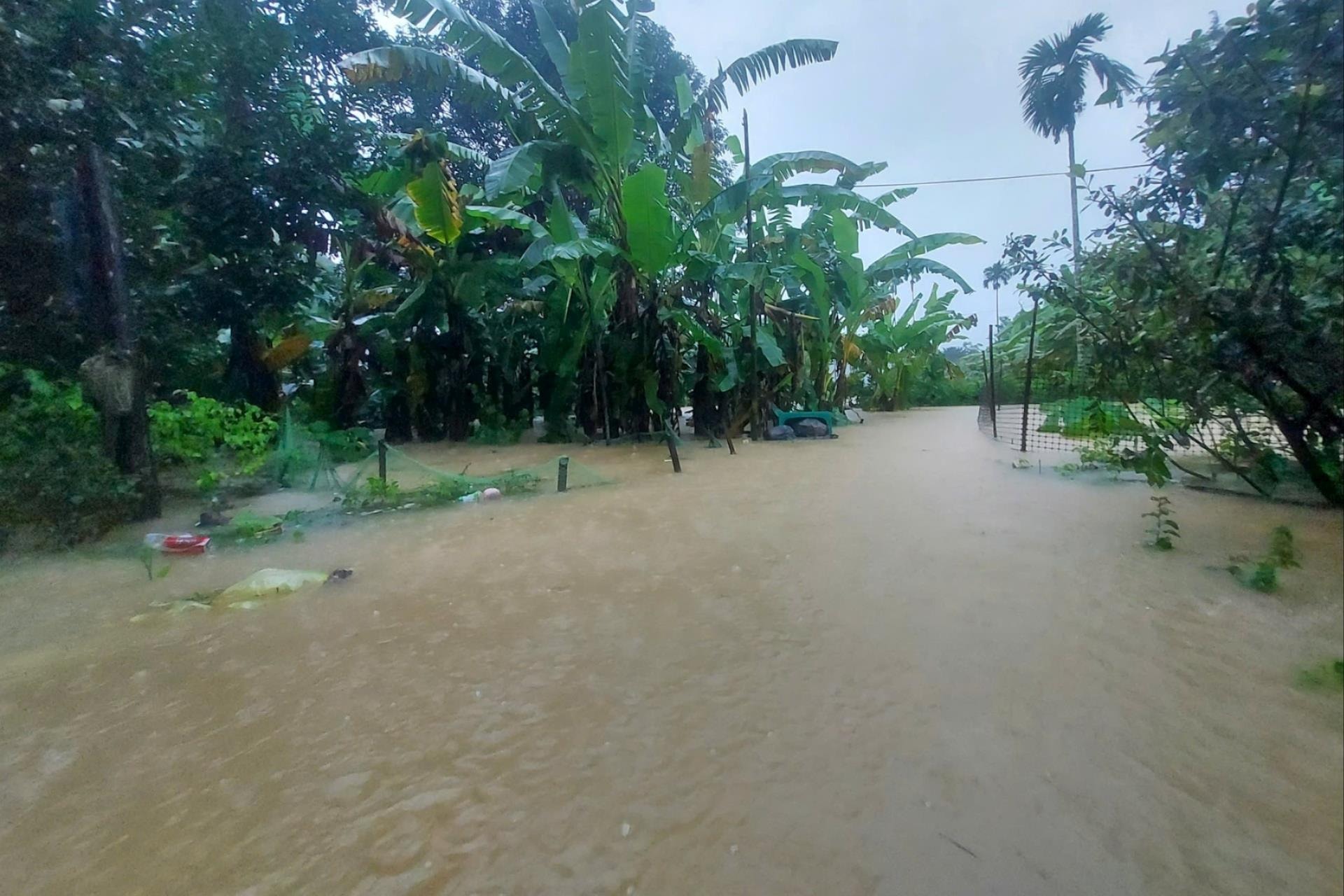 Nước lũ dâng ngập vườn tược, khu dân cư tại vùng trũng thấp xã Quế Phước. |