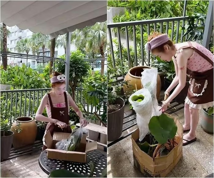 Có thể thấy, niềm vui hiện tại của Elly Trần không còn đến từ ánh đèn sân khấu hay vật chất, mà là sự bình yên khi được chăm sóc cây cối. Ảnh chụp màn hình |