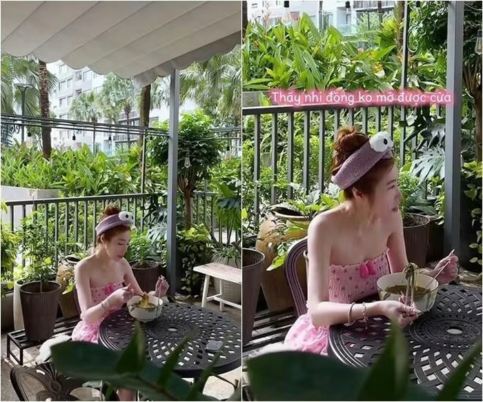 Ban công ngập sắc xanh là không gian thư giãn lý tưởng của Elly Trần. Ảnh: chụp màn hình |