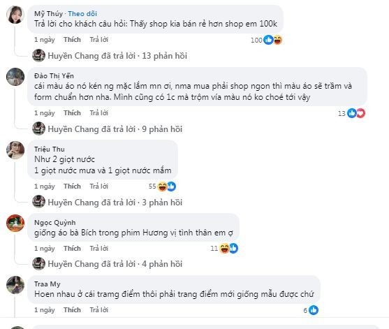 Nhiều bình luận so sánh hài hước, ví von chiếc áo nhận được “Như 2 giọt nước, 1 giọt nước mưa và 1 giọt nước mắm” hay liên tưởng đến trang phục của một nhân vật nổi tiếng trong phim: “Giống áo bà Bích trong phim Hương vị tình thân em ơi.”