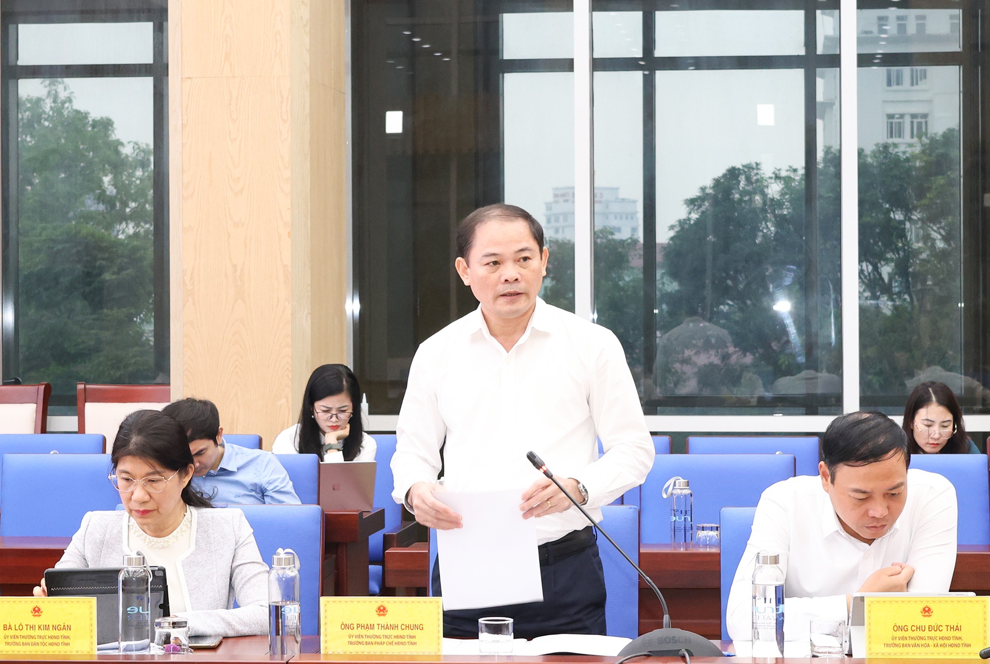 Trưởng Ban Pháp chế HĐND tỉnh Phạm Thành Chung báo cáo đánh giá kết quả thực hiện công tác sắp xếp, bố trí, kiện toàn, bổ sung cán bộ, công chức để vận hành chính quyền địa phương cấp xã thông suốt, hiệu quả và việc sắp xếp, bố trí trụ sở làm việc, tài sản công và các điều kiện làm việc cho các cơ quan, đơn vị cấp xã |