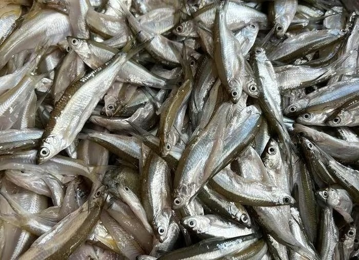Khi gặp nắng, cá tép dầu ánh bạc óng ánh. Ảnh: Facebook |