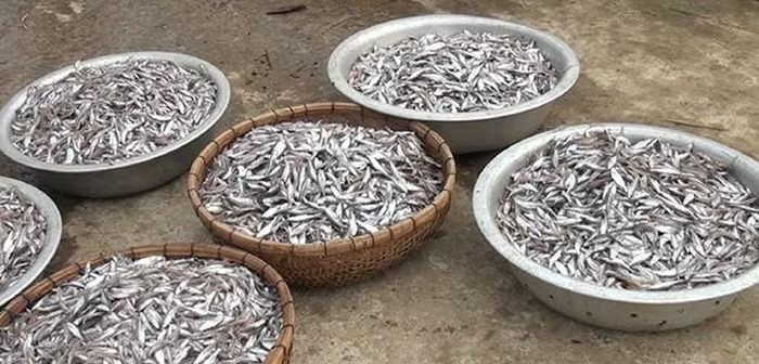 Khoảng 5 kg cá tép dầu tươi có thể cho 1 kg cá tép dầu khô. Ảnh: Internet |