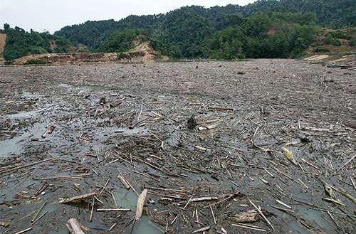 Nghệ An: Rác bủa vây đập phụ hồ thủy điện Hủa Na