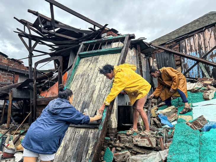 Một gia đình dọn dẹp đống đổ nát sau khi siêu bão Melissa đi qua Santiago de Cuba, Cuba ngày 29-10 - Ảnh: AFP |