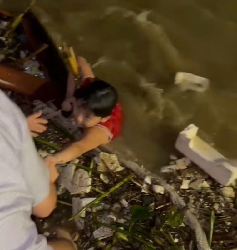 Trước đó, một thanh niên đang livestream trên Facebook tại khu vực phố đi bộ đường Bạch Đằng thì phát hiện bé trai lẫn trong đám rác trôi trên sông, liền hô hoán cầu cứu. Nghe tiếng kêu, nhiều người dân xung quanh lập tức chạy đến ứng cứu.