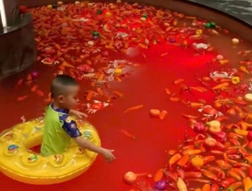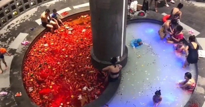 Du khách tắm trong nồi lẩu khổng lồ đầy ớt ở Trung Quốc
