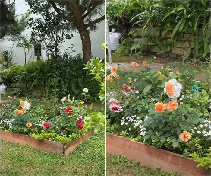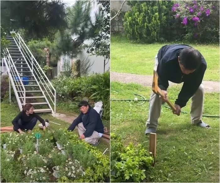 | Á hậu cải tạo khu vườn cùng bố. Ảnh chụp màn hình |