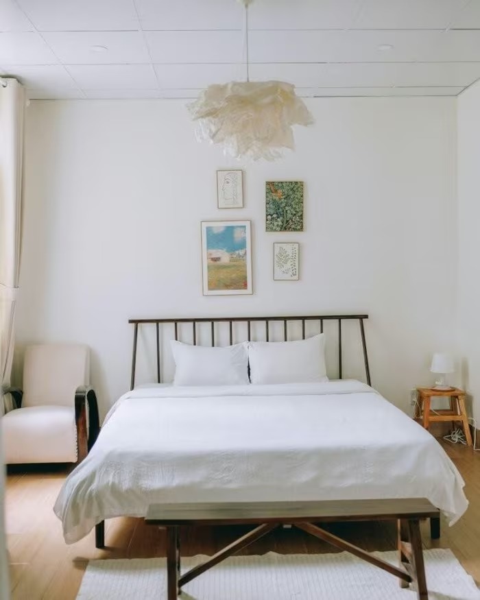 | Phòng ngủ được bài trí tối giản. Ảnh: Facebook |