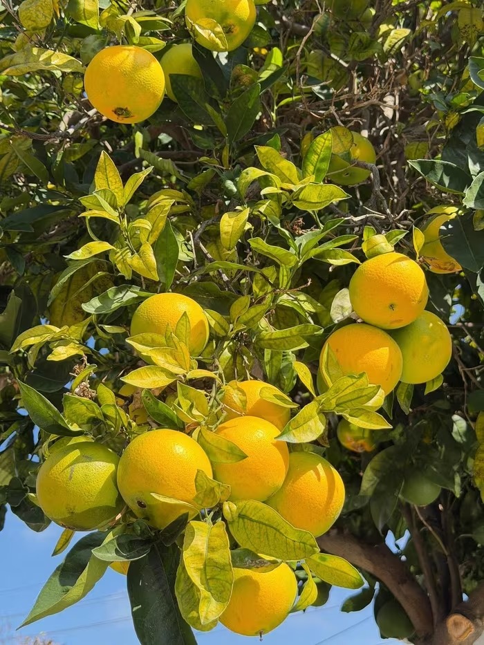 Cây bưởi với những trái to căng tròn, sum suê từ gốc tới ngọn. Ảnh: FB Trần Thúy Nga |