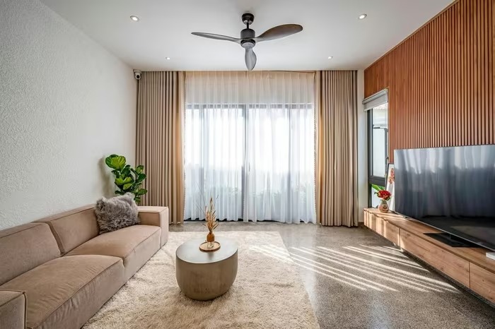 Phòng khách ngập tràn ánh nắng. Ảnh: Lilo Studio |