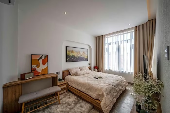 Phòng ngủ đơn giản, lấy ánh sáng tối đa. Ảnh: Lilo Studio |