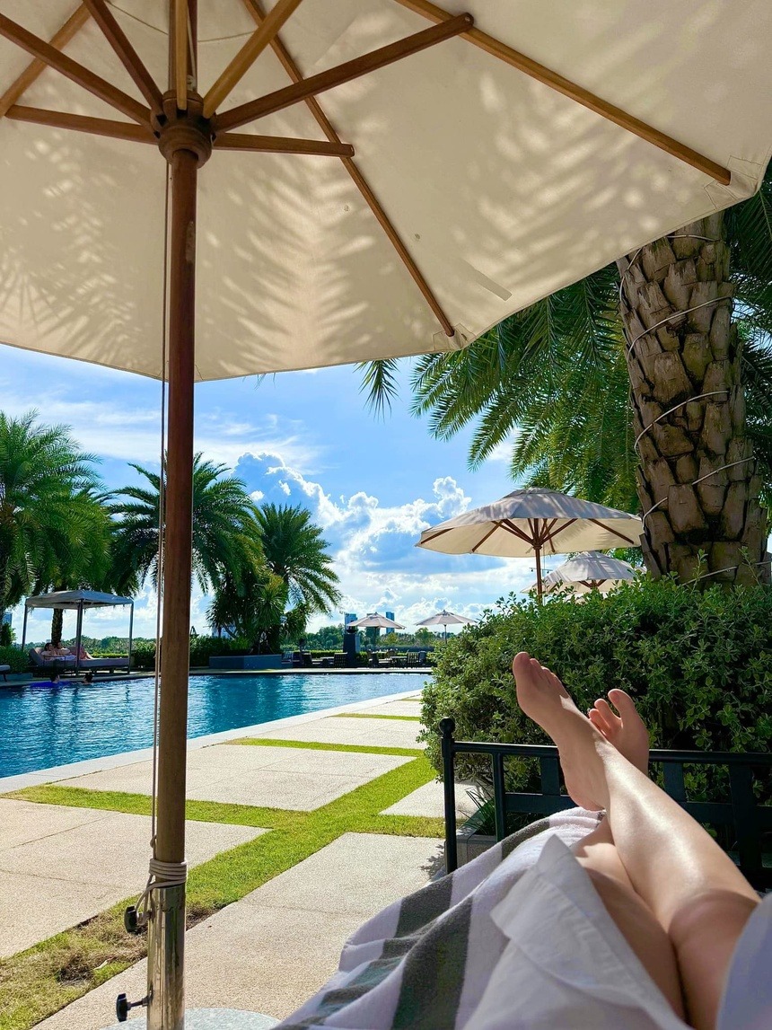 Không chỉ đi xa, Đoàn Di Băng còn thường xuyên staycation ngay trong thành phố để tận hưởng khoảnh khắc thư giãn. Cô từng nghỉ dưỡng tại một khu nghỉ dưỡng ven sông sở hữu view hoàng hôn lãng man, từng lọt top "Khách sạn boutique tốt nhất" do độc giả tạp chí du lịch DestinAsian bình chọn. |