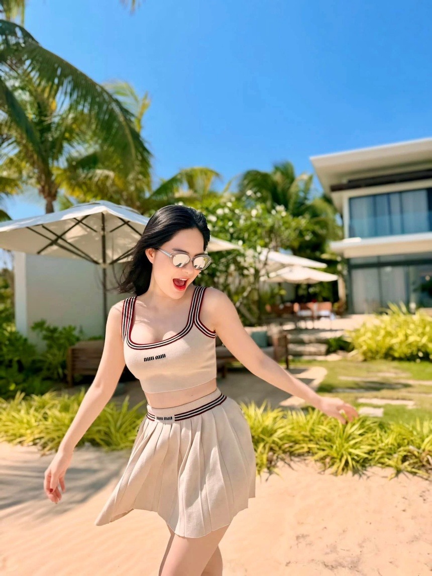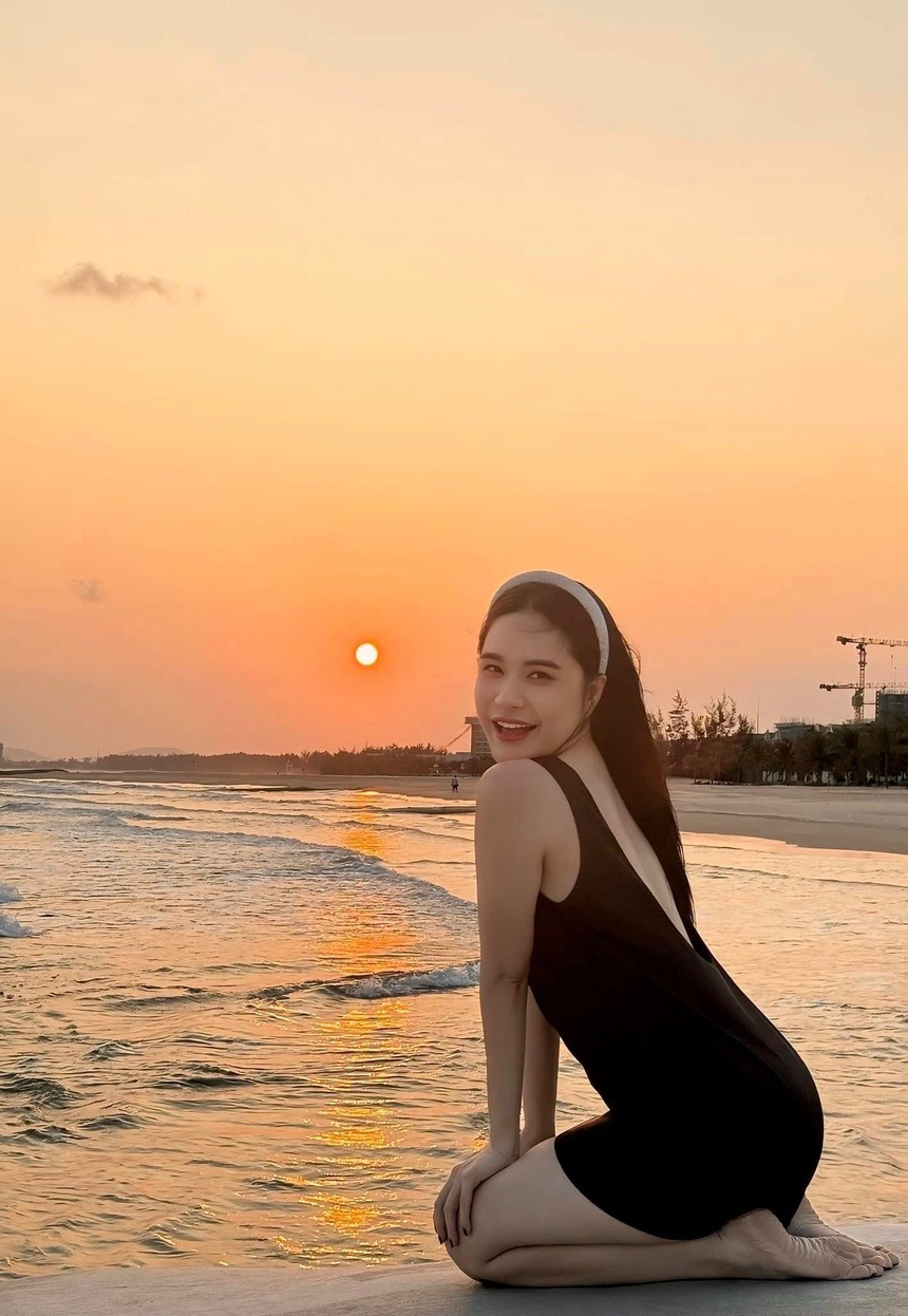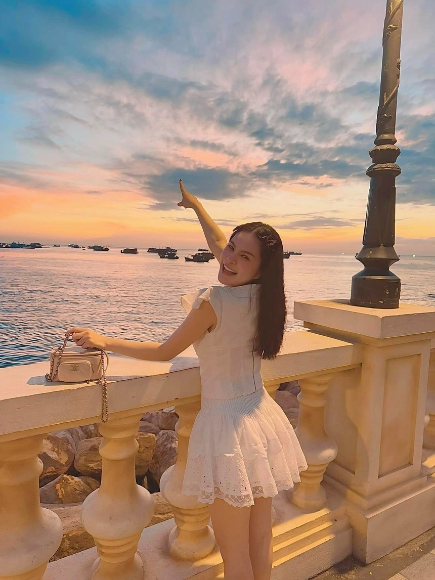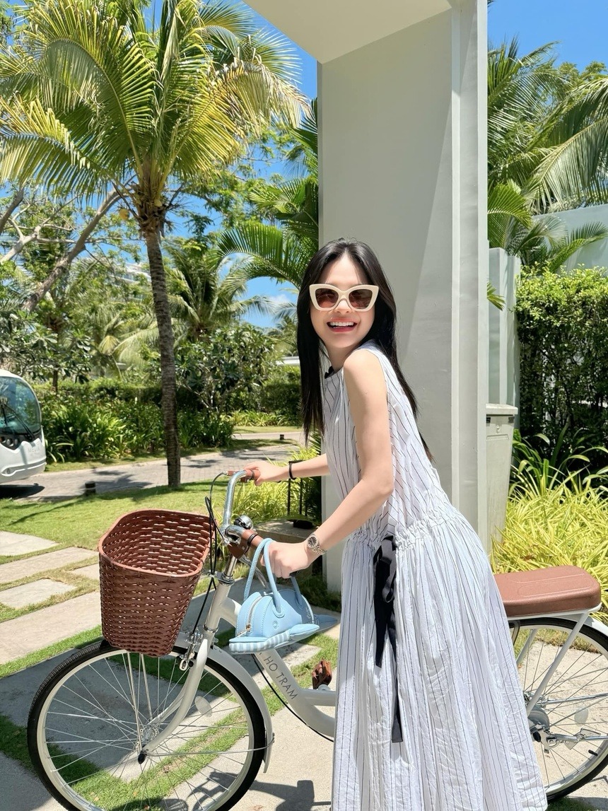 Giữa tháng 3/2024, Đoàn Di Băng cùng gia đình có kỳ nghỉ ngắn tại khu nghỉ dưỡng 5 sao nổi tiếng với bãi biển riêng và không gian xanh mát tại Hồ Tràm. Tại đây, cô đạp xe khám phá resort, tận hưởng không khí trong lành và ngắm hoàng hôn buông xuống trên biển. |