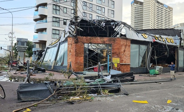 Một quán nhậu trên địa bàn phường Quy Nhơn bị gió cuốn bay, chỉ còn trơ lại khung sắt |