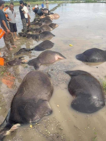 "Ngay khi nắm được thông tin, chính quyền xã đã gấp rút kết nối với thương lái đến thu mua giúp bà con theo giá thị trường, phần nào giảm thiệt hại. Chỉ sau ít tiếng, số trâu ngạt nước đã được bán xong", lãnh đạo này nói, cho biết không nắm được số tiền bán trâu cụ thể vì là thương lượng riêng của từng hộ dân với người mua.