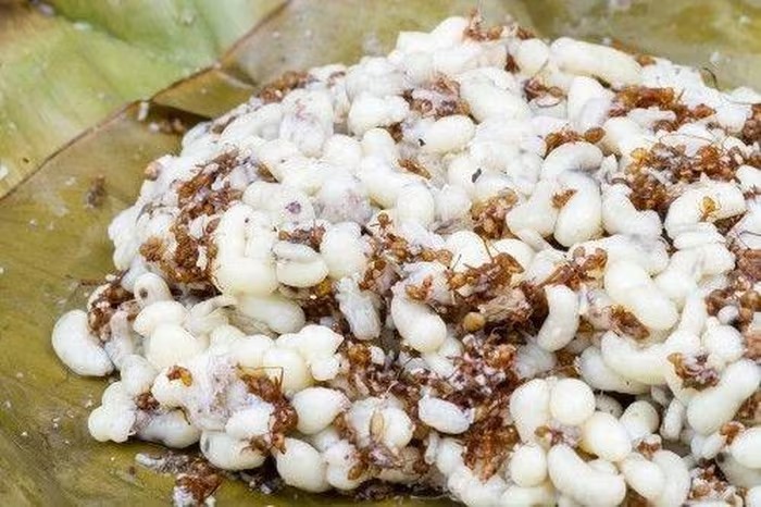 Nếu nộm hoa chuối hay gỏi đu đủ là món khai vị quen thuộc, thì người Thái lại có một phiên bản độc đáo hơn nhiều: nộm trứng kiến lửa (Larb Mote Daeng). Trứng kiến có vị béo, bùi, hơi chua và được xem là nguyên liệu quý hiếm, chỉ có theo mùa. Ảnh Internet |