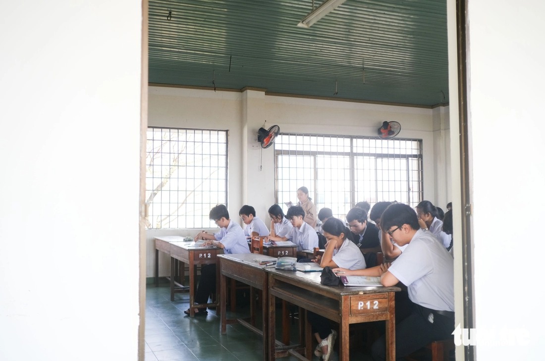 Tại Trường THPT chuyên Lê Quý Đôn, phường Quy Nhơn (thuộc Bình Định cũ), không khí học tập đã trở lại gần như bình thường. Buổi học sớm đầu tuần rôm rả hơn mọi ngày khi các bạn được gặp nhau mấy ngày sau bão Kalmaegi.