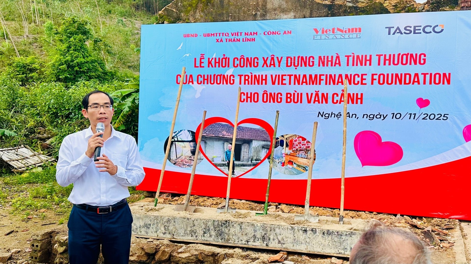 Chia sẻ tại buổi lễ, ông Nguyễn Quang Thân, Chủ tịch Công đoàn Tạp chí Đầu tư Tài chính – VietnamFinance, cho biết đây là một trong 7 căn nhà tình thương mà VietnamFinance Foundation tiến hành khởi công trong tháng 10 và 11, gồm 4 căn tại Thái Nguyên, 1 căn tại Hà Tĩnh, 1 căn tại Thanh Hóa và 1 căn tại Nghệ An. Đây cũng là căn nhà thứ 14 được xây dựng kể từ khi chương trình được thành lập.