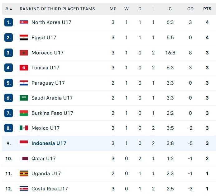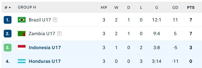 Indonesia có hiệu số thấp và đang nằm ngoài nhóm đội có vé đi tiếp. |