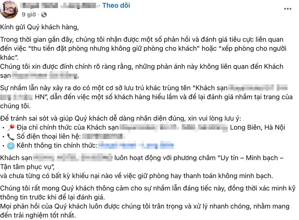 Nhiều khách sạn bị đánh giá nhầm vì trùng tên |
