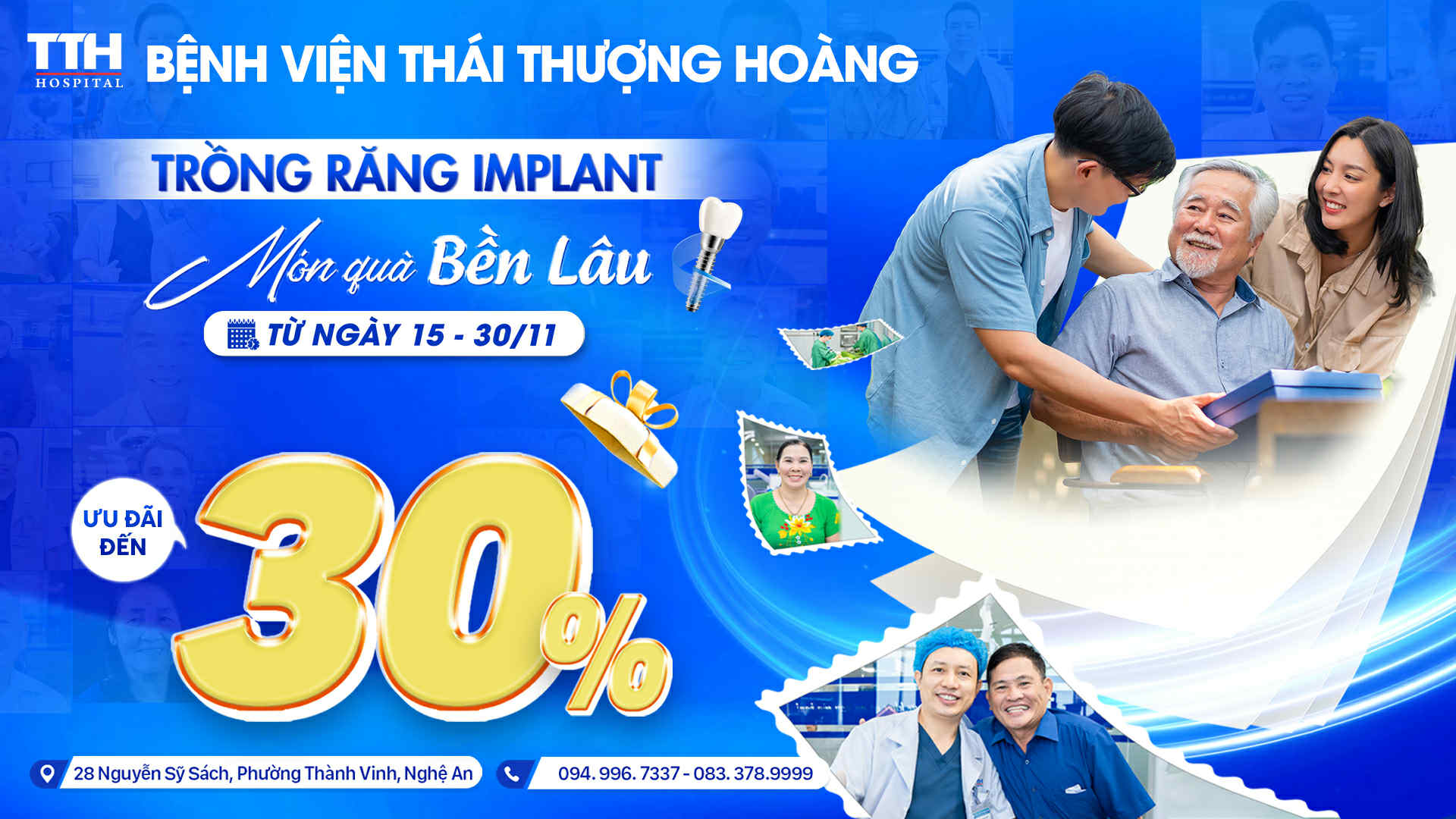 Nhằm tri ân khách hàng và lan tỏa giá trị chăm sóc sức khỏe răng miệng, Bệnh viện Thái Thượng Hoàng triển khai chương trình ưu đãi lớn nhất năm “Trồng răng Implant – Món quà bền lâu”, diễn ra từ ngày 15/11 đến hết ngày 30/11/2025.