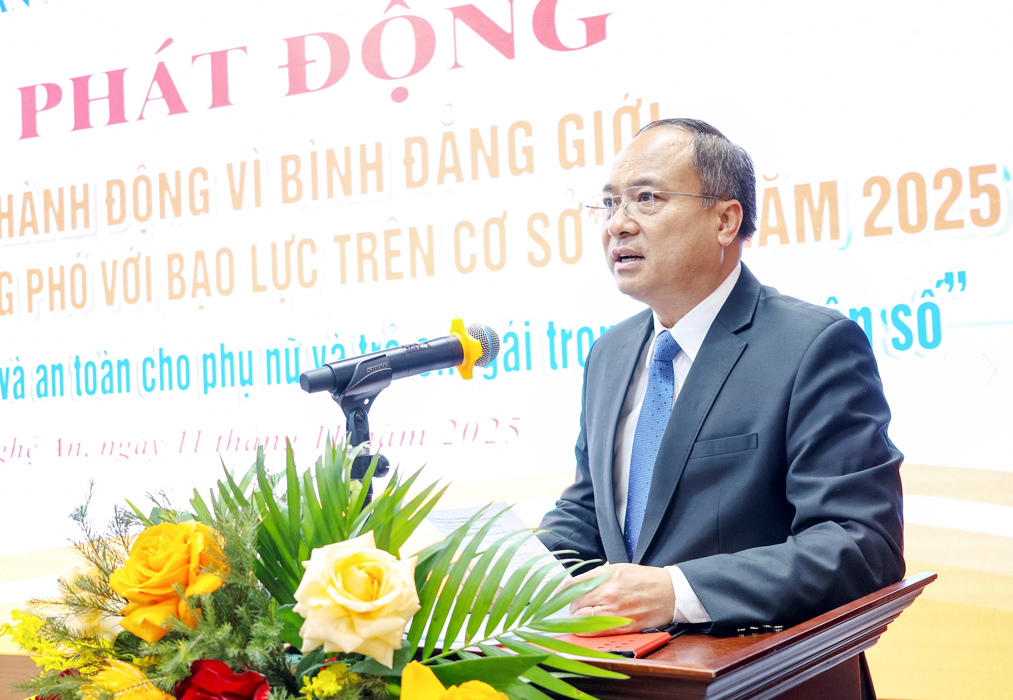 Phát biểu tại buổi lễ, Giám đốc Sở Nội vụ Nguyễn Viết Hưng - Phó trưởng ban Thường trực Ban vì sự tiến bộ phụ nữ tỉnh cho rằng, kỷ nguyên số đang mở ra trước mắt những cơ hội lớn và kèm theo đó không ít thách thức về lỗ hổng an toàn số ngày càng tinh vi hơn. Lựa chọn chủ đề năm nay là “Bình đẳng giới và an toàn cho phụ nữ và trẻ em trong kỷ nguyên số” – không phải chỉ để truyền thông, mà để nhấn mạnh trách nhiệm – hành động – và thay đổi thực chất trong toàn xã hội.