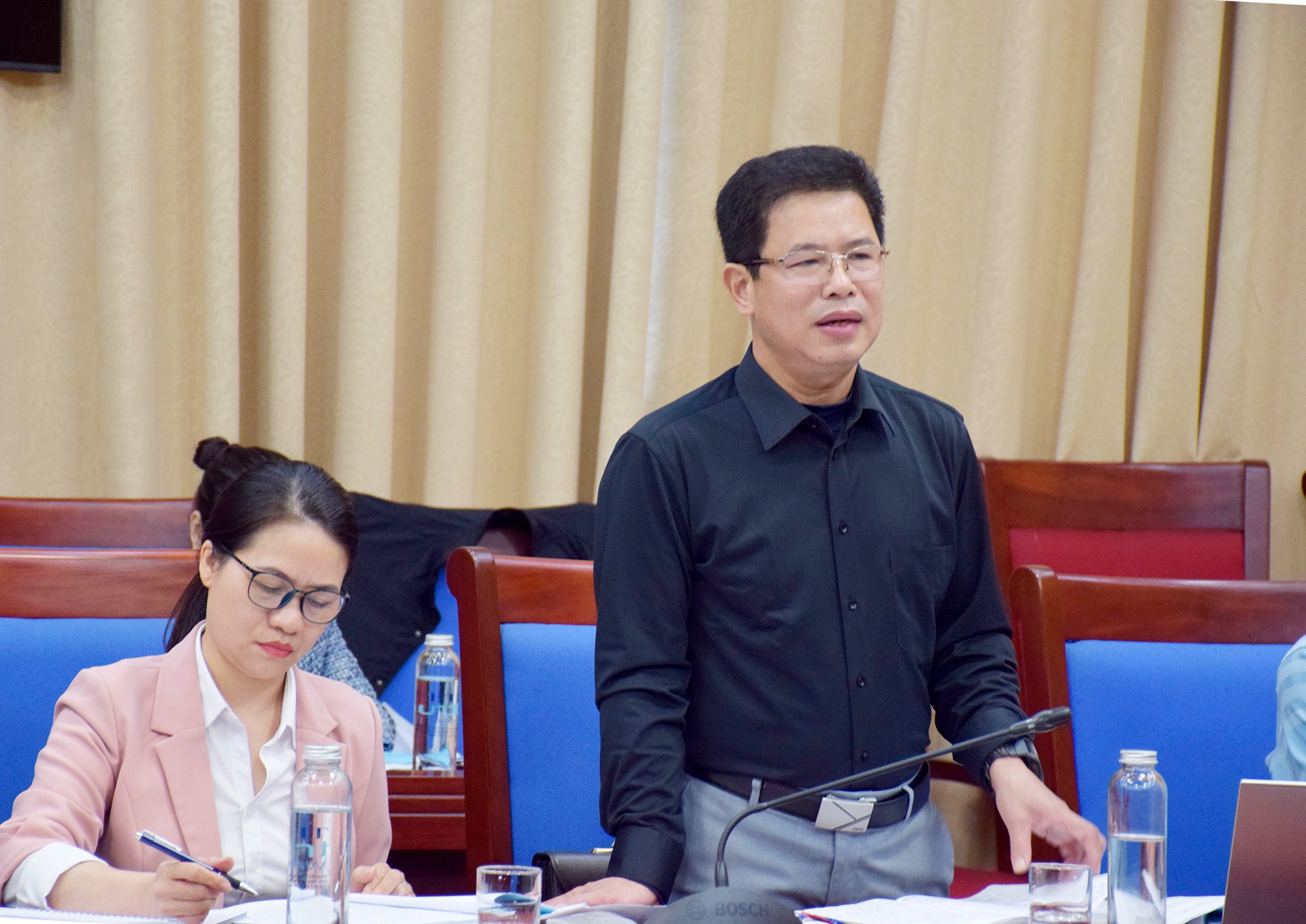 Phó Giám đốc Sở Nông nghiệp và Môi trường Trần Xuân Học báo cáo nội dung dự thảo Nghị quyết |