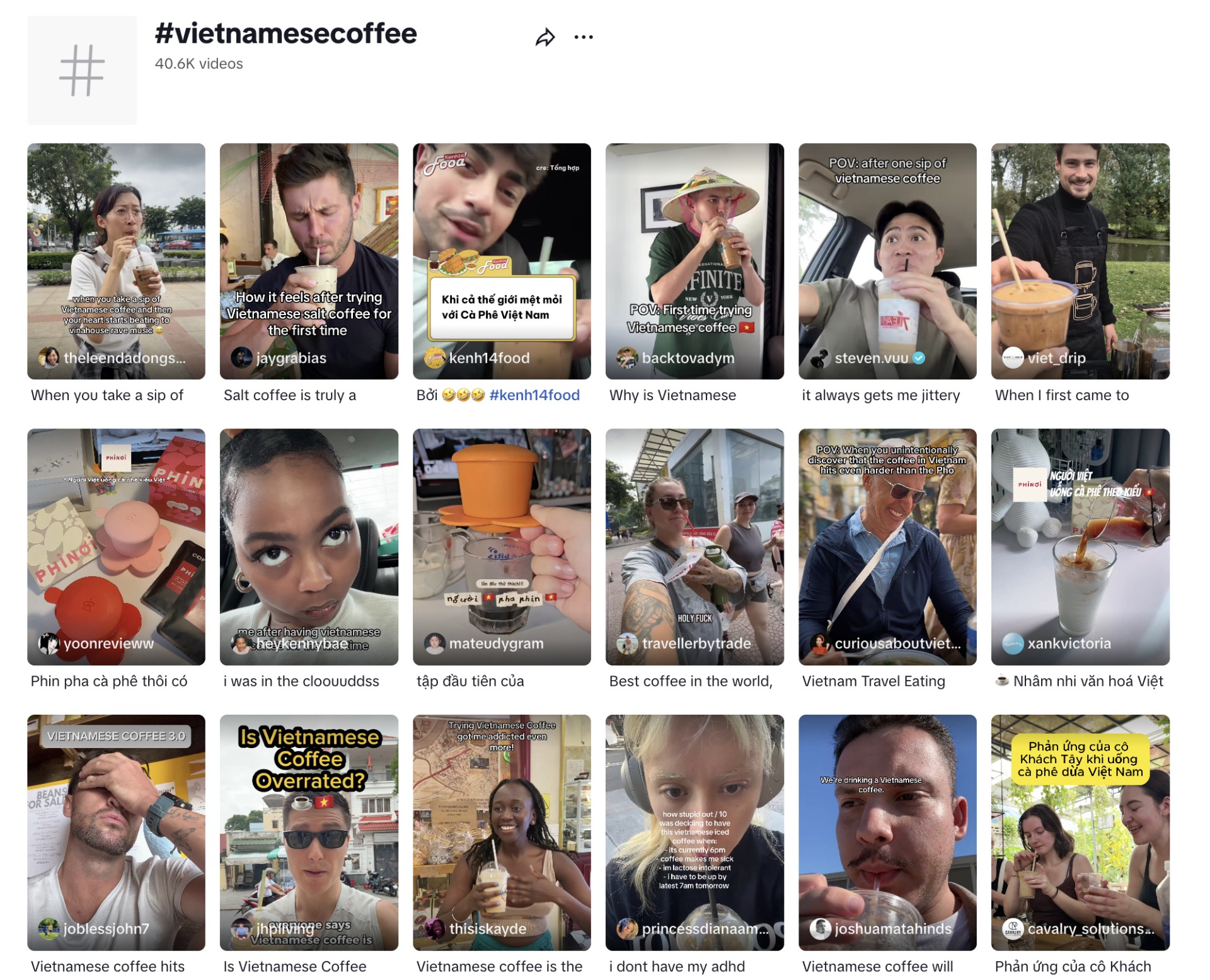 Đặc biệt, hashtag #vietnamesecoffee trên TikTok đã có hơn 40 nghìn bài đăng và đa số là của những vị khách Tây ghi lại những phản ứng có 1 không 2 của mình khi thưởng thức món này. Trong đó, không ít video đạt gần triệu lượt xem nhờ biểu cảm chân thật và loạt bình luận đến từ những du khách khác chia sẻ về cảm xúc của mình khi uống cà phê.