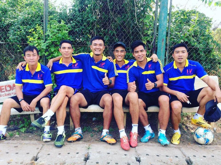 Hồ Văn Lợi (bên trái ngoài cùng) cùng các đồng nghiệp khi Trung tâm PVF còn đóng quân tại TP.HCM |