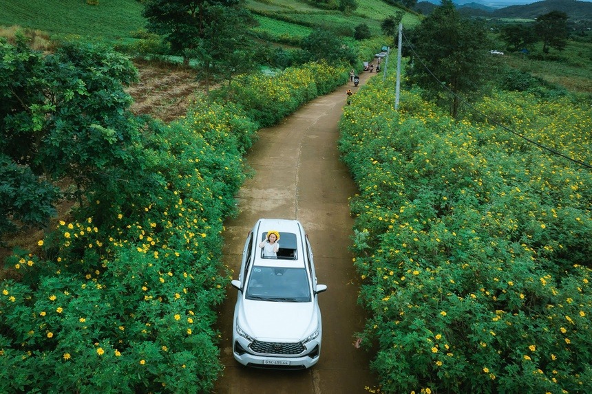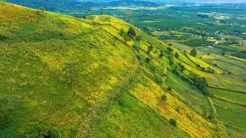 Dưới chân núi, những khóm dã quỳ mọc thành từng luống, phủ kín hai bên con đường dẫn vào Chư Đăng Ya. Sắc hoa vàng điểm tô trên nền lá xanh tốt, trở thành phông nền hoàn hảo cho những khung hình mùa hoa khiến du khách không thể rời mắt. Hoa bắt đầu nở rộ từ giữa tháng 11 và kéo dài đến đầu tháng 12, nhuộm vàng cả vùng cao nguyên trong những ngày đầu mùa khô. |